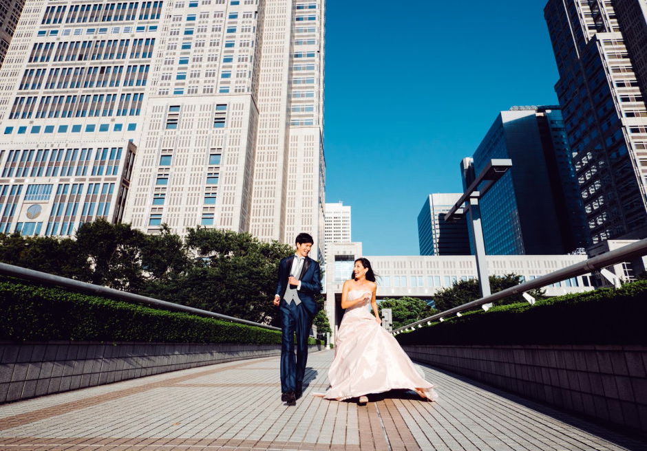 新宿・吉祥寺までの中央線沿線、東京都庁近辺では高層ビルが立ち並び都会ならではの街並みの中での前撮り撮影を行えます。杉並区にある古民家を利用した文化財でのフォトウェディング・古民家婚・ふたり挙式も可能。